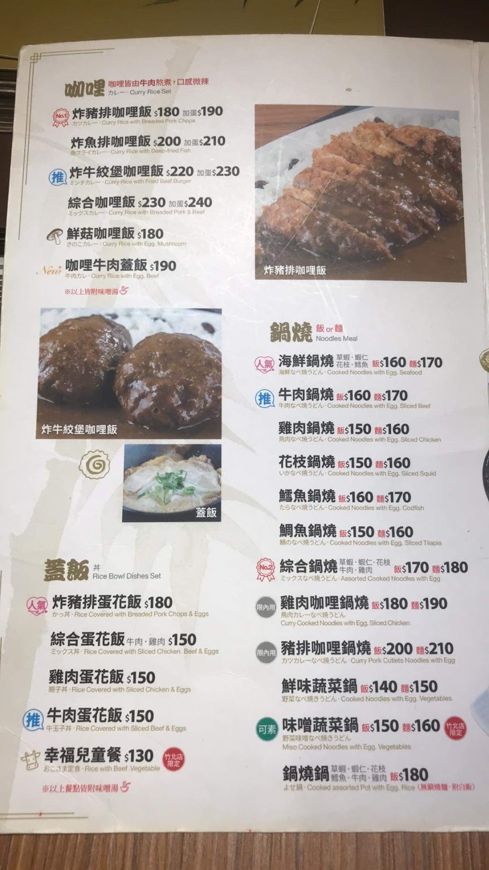 從這家店在新竹圓環時開始光顧了,一直很喜歡他們的豬排咖哩鍋燒。