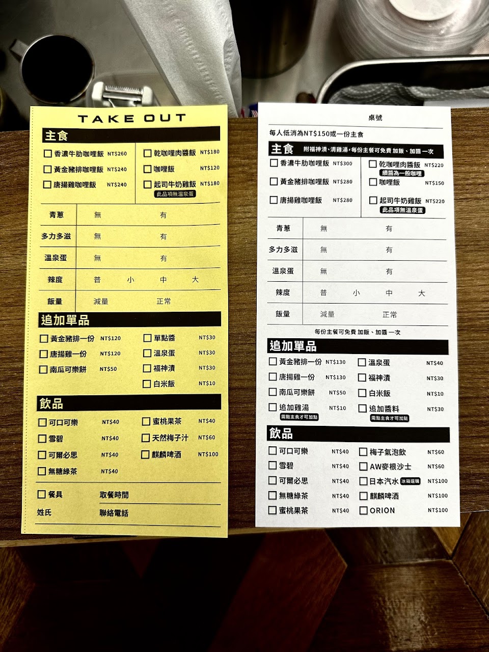 如果是咖哩愛好者,建議點咖哩飯就好,不要配炸物。 服務 內用 餐點類型 晚餐 平均每人消費金額 $200-400 餐點:2 服務:3 氣氛:4 建議的餐點
