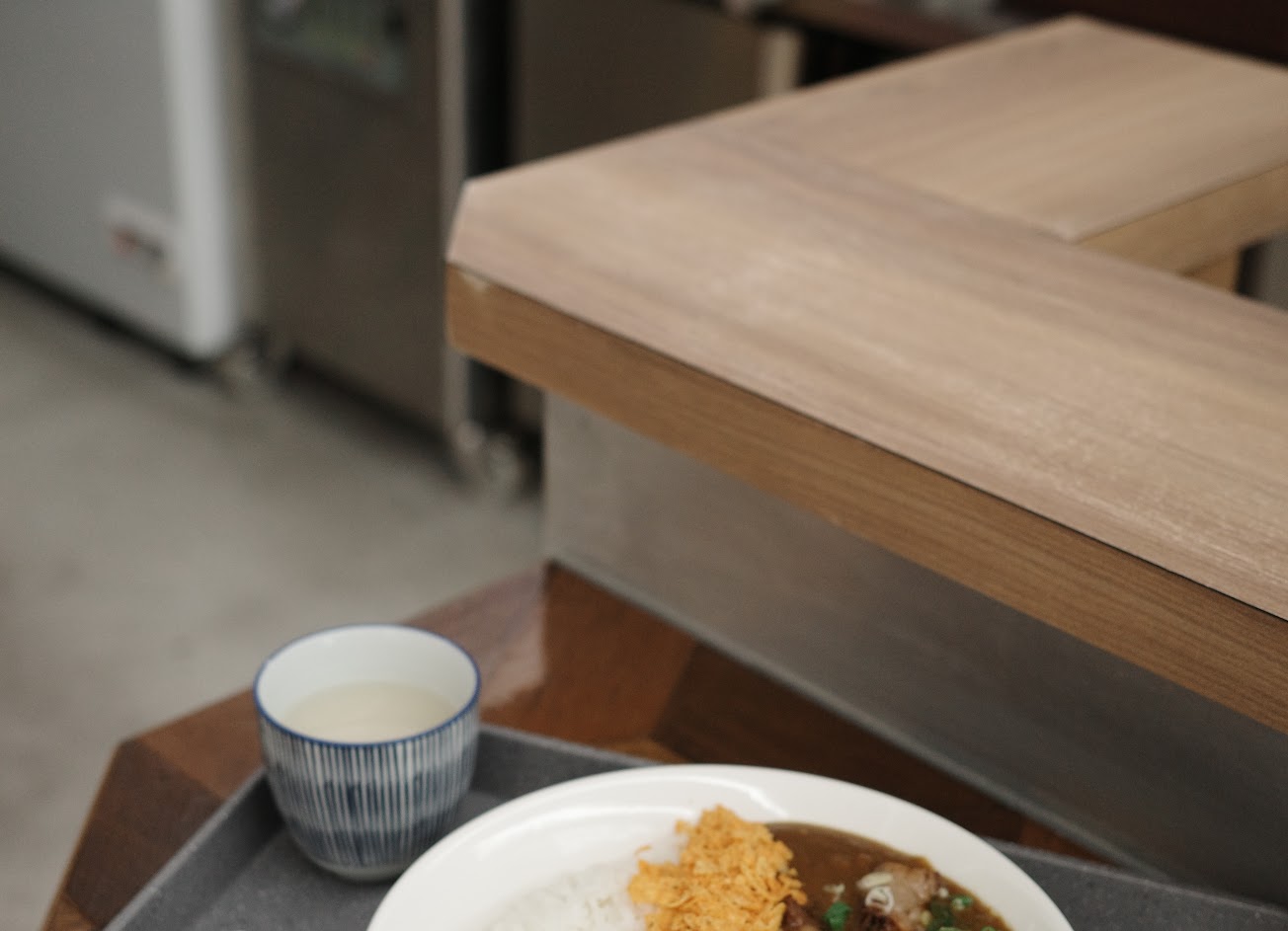 偏失望,點了300塊的牛肉咖喱,覺得這樣的餐點沒有符合這樣的價值,端上桌時咖喱跟飯的溫度都不是熱呼呼而是溫的,天冷時吃這樣的餐點感覺有點糟,咖喱味沒有特別出色,牛肉的質感也覺得偏普通。明明沒有客人但只能做吧檯,店內的氣氛給人一種抑鬱的感覺,這樣的用餐環境一點都不讓人覺得放鬆,然後店裡莫名的訊號很差,連要滑手機都沒辦法。