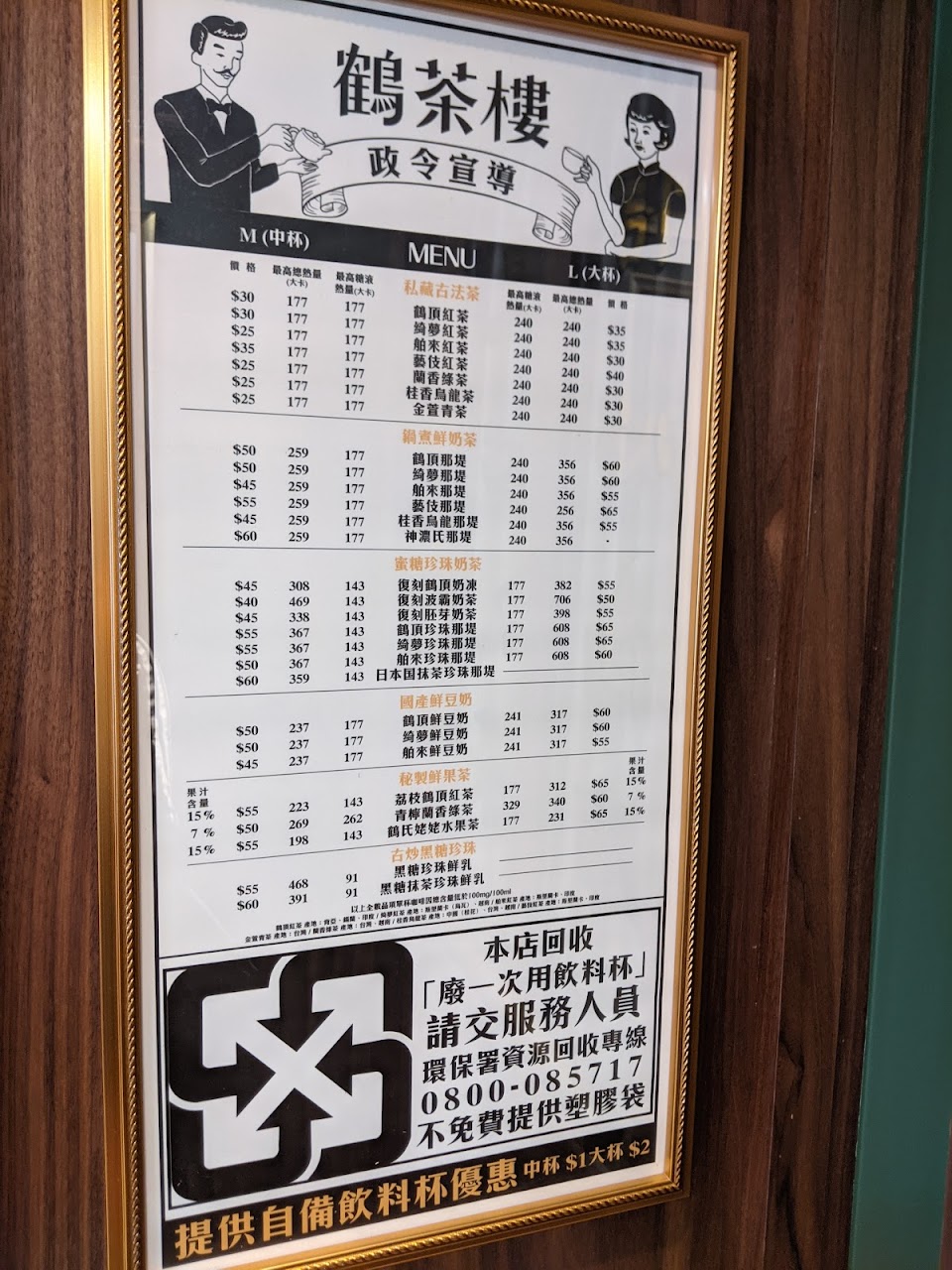 主要是 點餐檯店員態度真的好好!讓我想給個5星?是禮拜四晚班的男店員,大概快20:40去買,雖然21:00打烊快下班了卻依然很有耐心~剛好零錢比較多(´・ω・`)他就等我數完,付款後我說要用環保杯裝,他就馬上跟後台說先不要裝,重新幫我結一次(我本來不知道鶴茶樓環保杯可以-5元),我跟他說不好意思他還很禮貌得回沒關係。