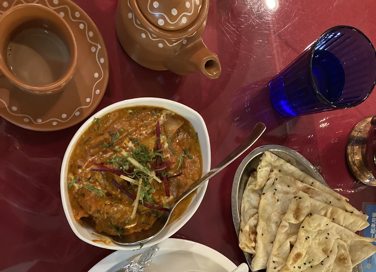 很有特色的印度餐廳,炭香料雞很推,咖哩兩人一份剛好加一碗飯剛好還可以搭配烤餅,原味烤餅像台式口味,坦都全麥烤餅微硬但是不會到很硬很有特色也可以配咖哩吃,還有真的可以看到印度人!