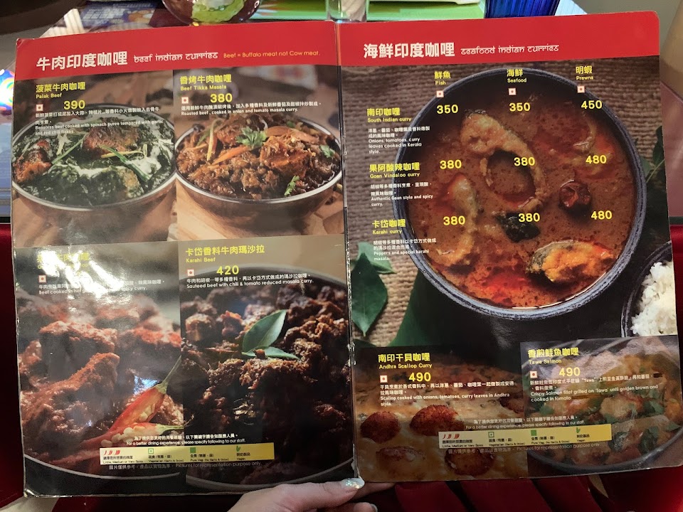 這次點了雞肉咖哩餃子、羊肉菠菜咖哩、海鮮南印咖哩。餃子內餡飽滿,裡面偏乾但搭配附的醬料後吃起來很好吃。咖喱搭配薄餅或是長米飯吃都很好吃,菠菜口味可以吃到滿重的香料味。整體是很地道的印度料理!有些餐點可能不太符合台灣人用餐習慣,但吃起來很新奇,香料味十足,用餐氣氛良好,裡面有幾位印度小哥店員服務都很好,整體用餐體驗很棒! 服務 內用 餐點類型 午餐 平均每人消費金額 $600-800 餐點:5 服務:5 氣氛:5