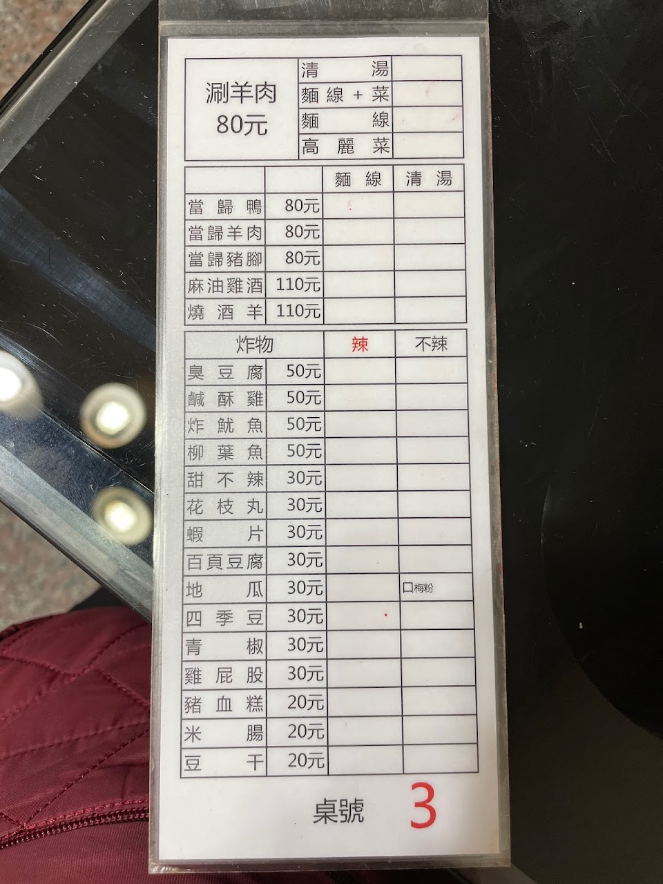 特別去吃~用餐環境還算乾淨整潔 星期五的19點左右內用吃,等待時間還算ok 點了涮羊肉+高麗菜 湯頭覺得比較鹹一點 炸物只有點了地瓜薯 可能是比較躁一點 吃完好幾天長了痘痘