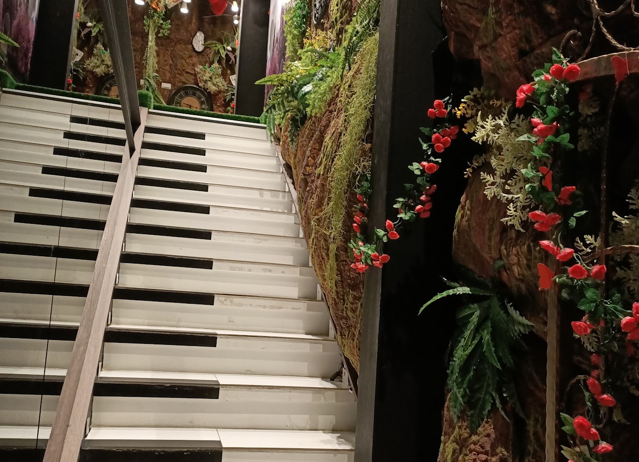 洗手間在二樓 整個佈置成網美拍照點 樓梯還能像鋼琴一樣可以演奏 超吸睛