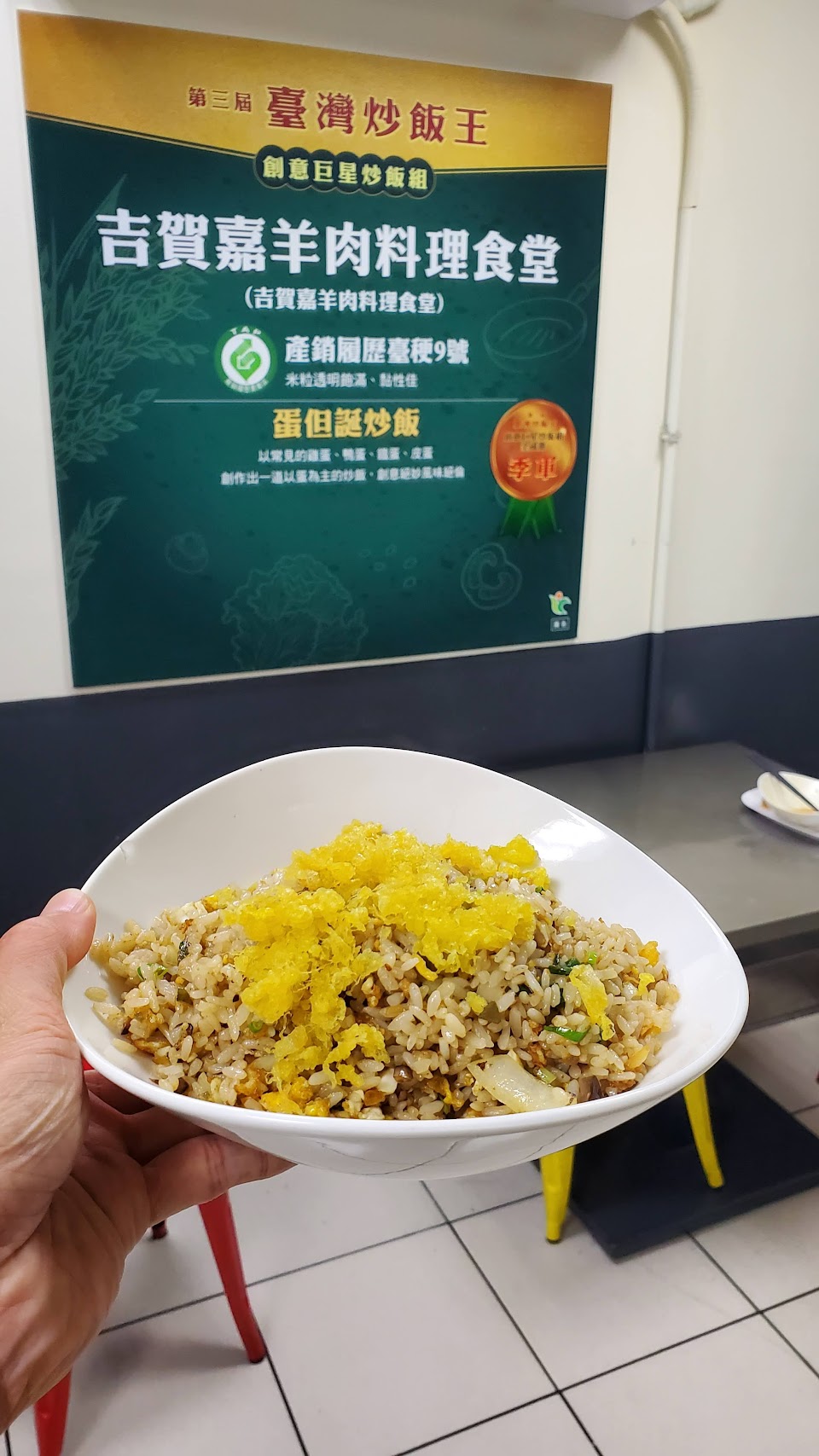 蛋但誕炒飯還不錯,但是吃不出裡面有宣傳的鐵蛋跟鴨蛋。芥蘭炒羊肉勾芡太多了,我以為我點的是芥蘭燴羊肉。最令人生氣的是芥蘭炒羊肉是點不辣的,但是來了卻很辣,反應之後店員回復,因為用的醬本來就辣的。看到得獎炒飯慕名而來結局卻令人失望