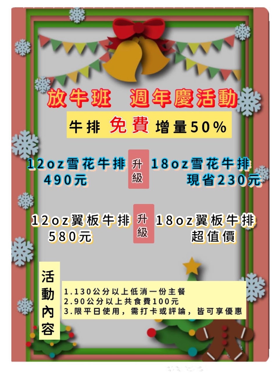 「放牛班」週年慶,12oz雪花牛免費升級16oz,???