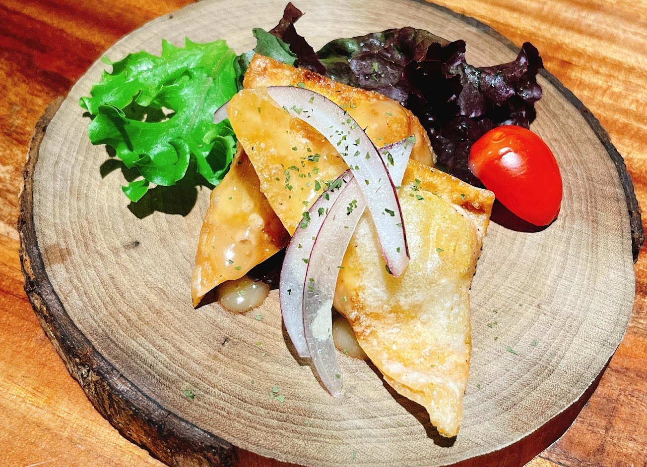 主廚招待炸咖哩餃 外面裹著蜂蜜芥末醬綜合了炸咖哩餃的油膩,搭配的很好吃