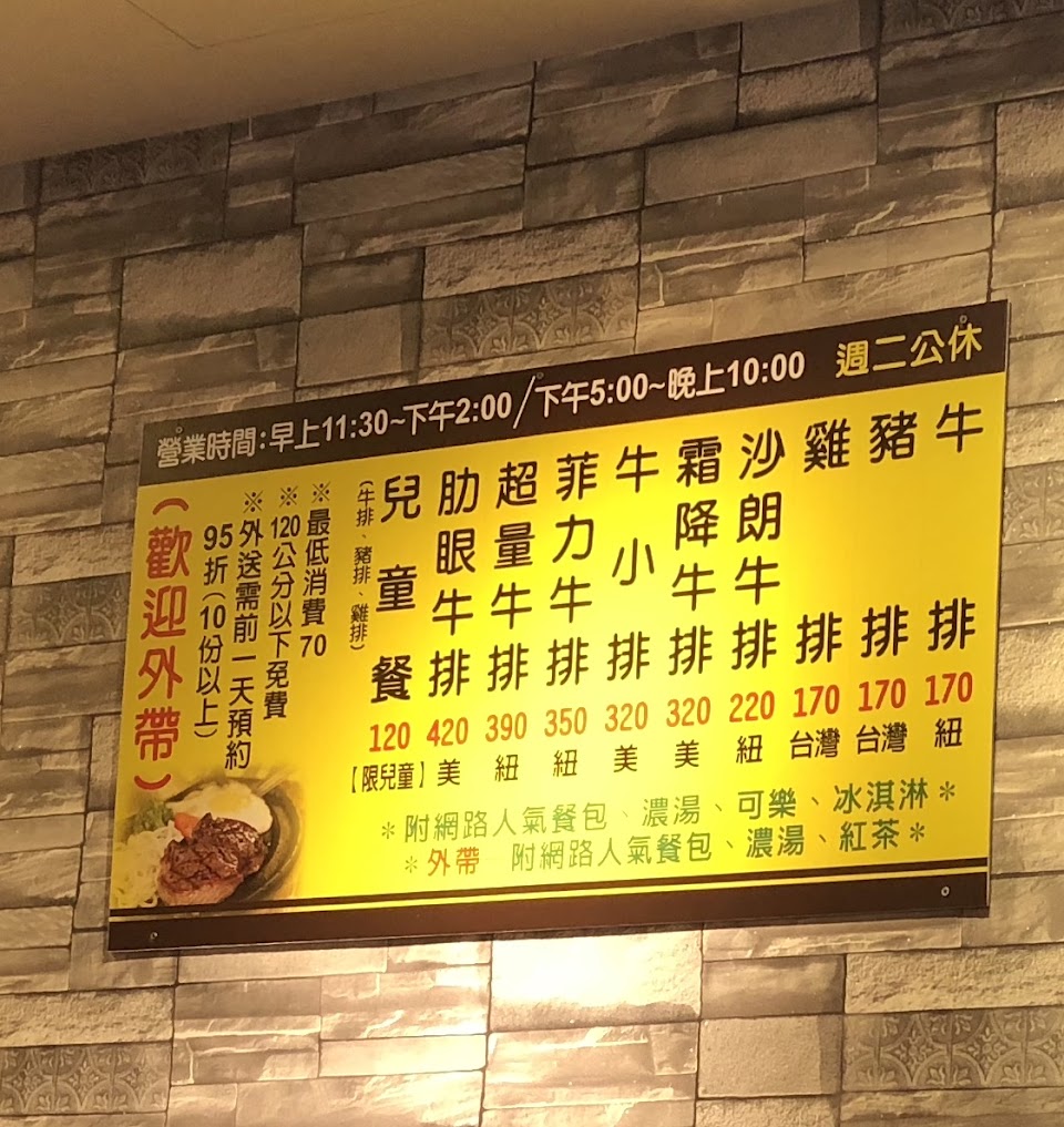 乾淨的牛排店,小小的店面但是環境是舒服的,平價好吃
