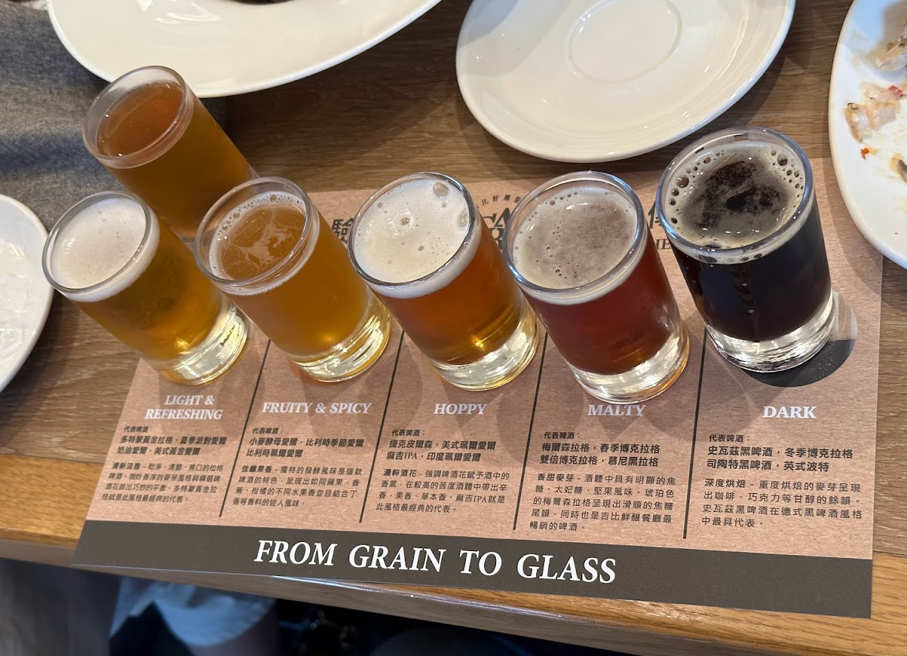 服務人員也都很專業,尤其是介紹他們家的啤酒口味,雖然很多專有名詞聽不懂,但是把所有的口味都喝過一輪,感覺每一種啤酒的鑑別度都很高,不管是啤酒花的香味或是其他的果香都很特別,更重要的是都很順口且完全沒有苦澀味,雖然小姐在介紹時說某些口味會有,但我們完全喝不出來。