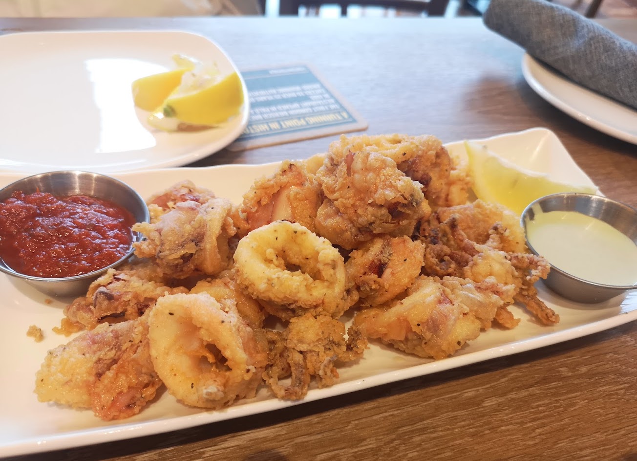 服務不錯,但義大利麵就普通,炸洋芋片不錯,小點有點鹹但適合配酒。炸蝦也好吃。