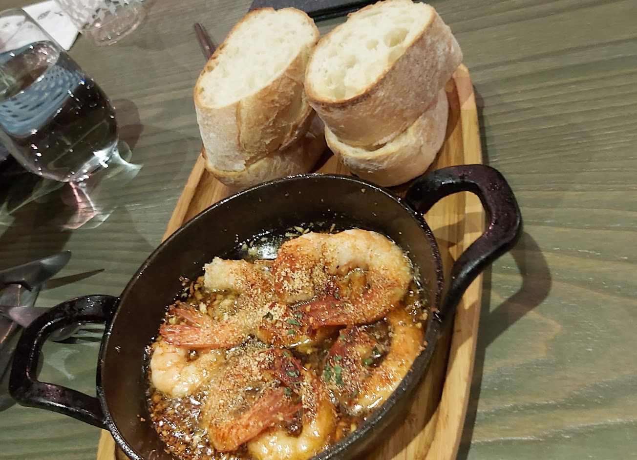 大家都推薦橄欖油蒜味鮮蝦配麵包,我們嘗試了新菜單的小雞腿,我覺得是失望