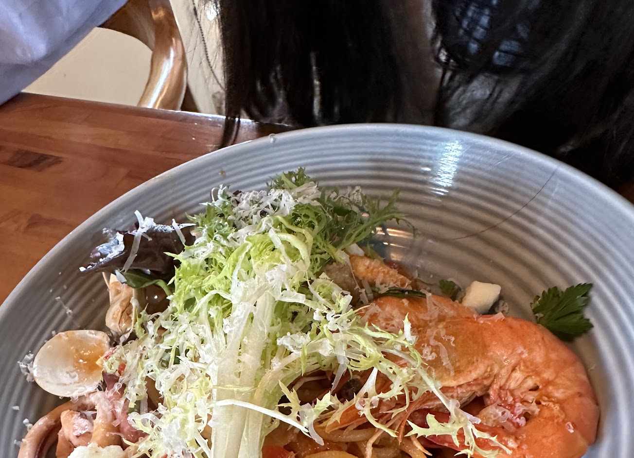 煙花女海鮮義大利麵+單點紅茶拿鐵