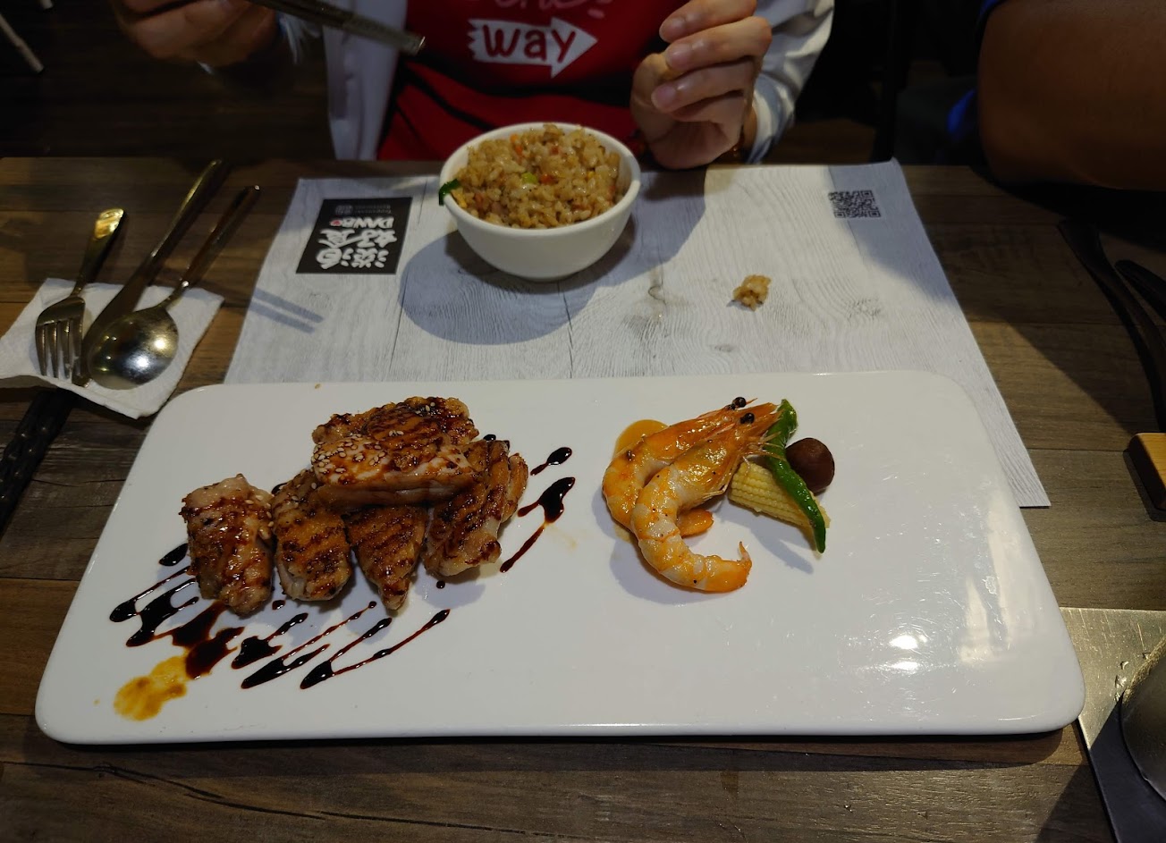 鐵板燒料理好吃~口味較為清淡,旁邊有調味料可以自己斟酌添加~平價不收服務費。
