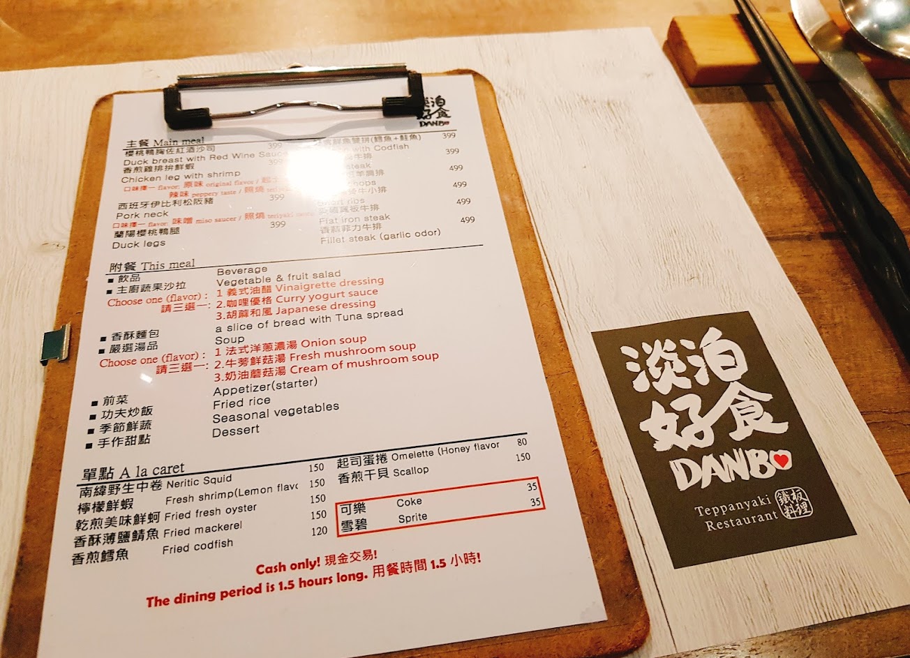 餐點價格399/499 整體CP值很高 雞腿和菲力都不錯 是一間值得推薦的鐵板燒餐廳