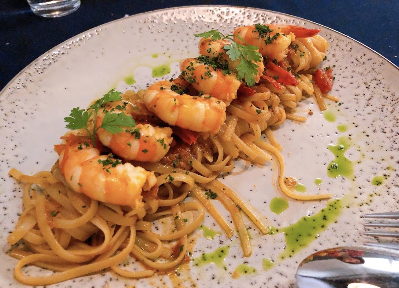 今天點了無花果瑞可達沙拉 龍蝦醬蝦子麵 戰斧豬排,沙拉清爽搭配新鮮無花果跟帶點檸檬清香的瑞可達起司,還有黑芝麻海綿蛋糕加上波特酒醬汁是很好的開胃菜,龍蝦醬義大利麵醬汁有滿滿的龍蝦味,但又不會過於濃郁,麵條煮的恰到好處配上新鮮的去殼蝦子,非常划算推薦,吃完麵剩的醬汁還可以沾麵包吃,好吃到一點都不想浪費,戰斧豬搭配烤蔬菜也是招牌菜,豬肉完全不乾柴,配上旁邊的主廚特製香料真的是絕配,有煙燻paprika的香味,尾韻帶點甜?? 每一道都好吃真心推薦價錢也合理,店裡還有多款進口啤酒也都是外面比較少見的,喜歡喝酒的也可以下班後去小酌一下?? 外場兩位服務也很親切專業,整體用餐下來非常舒服? …