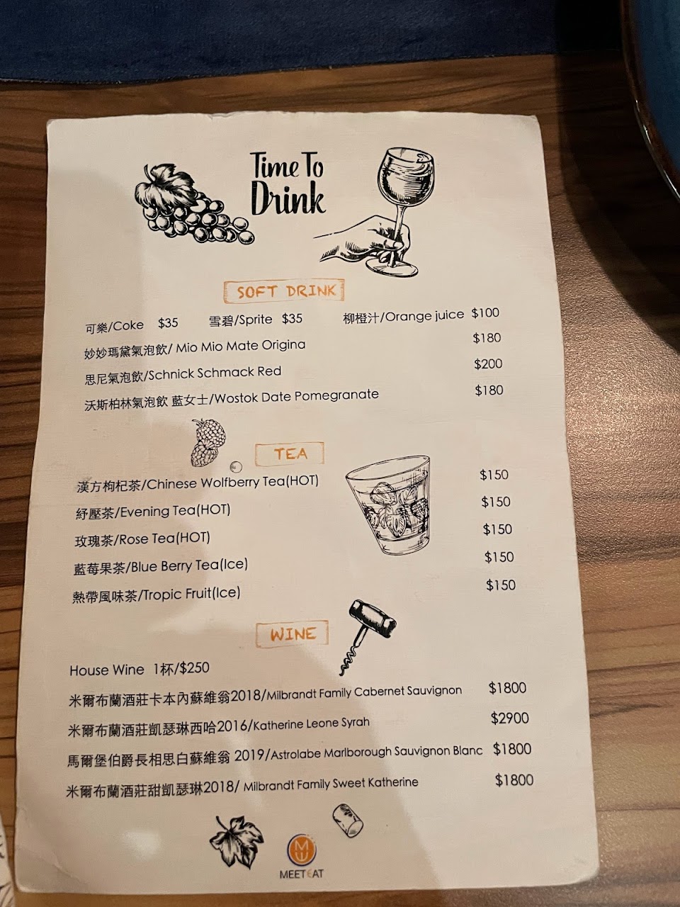 味道不錯但是價格略高,紅白酒選項太少而且太貴,建議要有比較符合餐點的選項