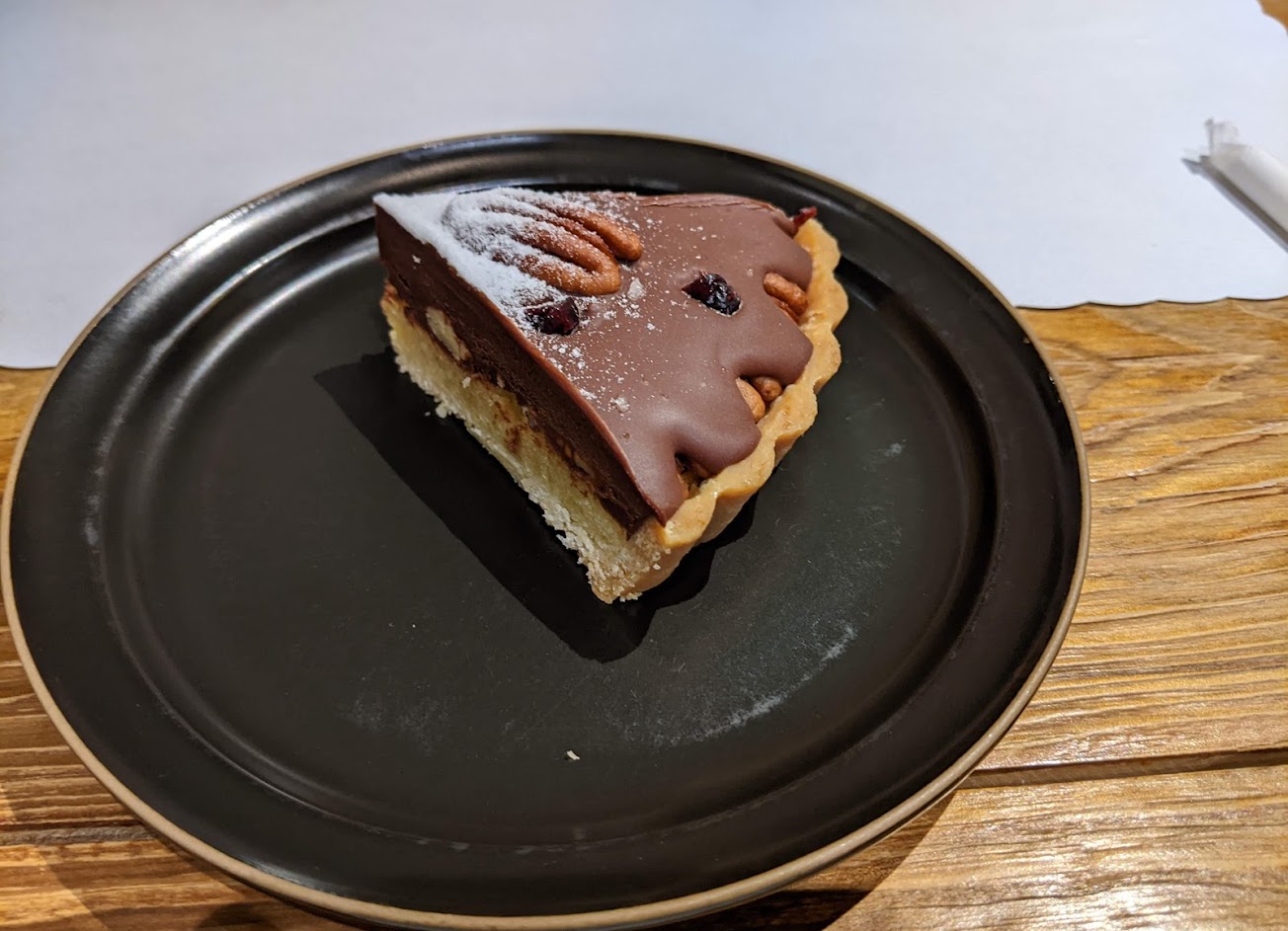檸檬塔不錯;巧克力塔好歸好但有點膩,創意是最下層是QQ麻吉但搭起來不突出;太妃焦糖戚風,蛋糕體有點乾,鹽的品質有點死鹹;抹茶千層好吃!