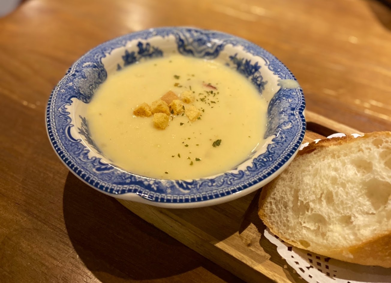 雖然是簡單的前菜,麵包鬆軟烤的酥酥的,口味清淡真是好吃,巧達濃湯讓人驚艷,好好喝喔,特別是麵包沾濃湯來享用別有一番風味,是一個非常讚的用餐體驗,細節部分都讓人舒服,服務人員親切有耐心,五星好評,你一定要來用餐喔,真心推薦。