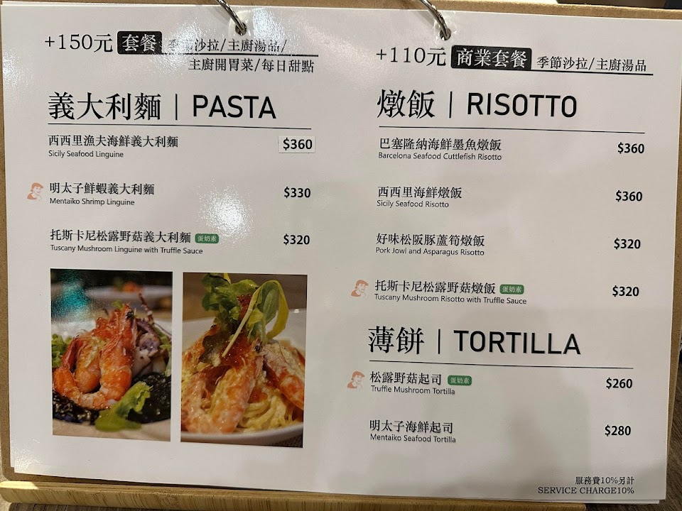 南瓜濃湯的南瓜味需要用心感受,海鮮義大利麵必點,好久沒有吃到感覺只有番茄醬加冷凍海鮮做出來的料理,這個價格讓你有滿滿的高級感,非常優秀,不能只有我吃到