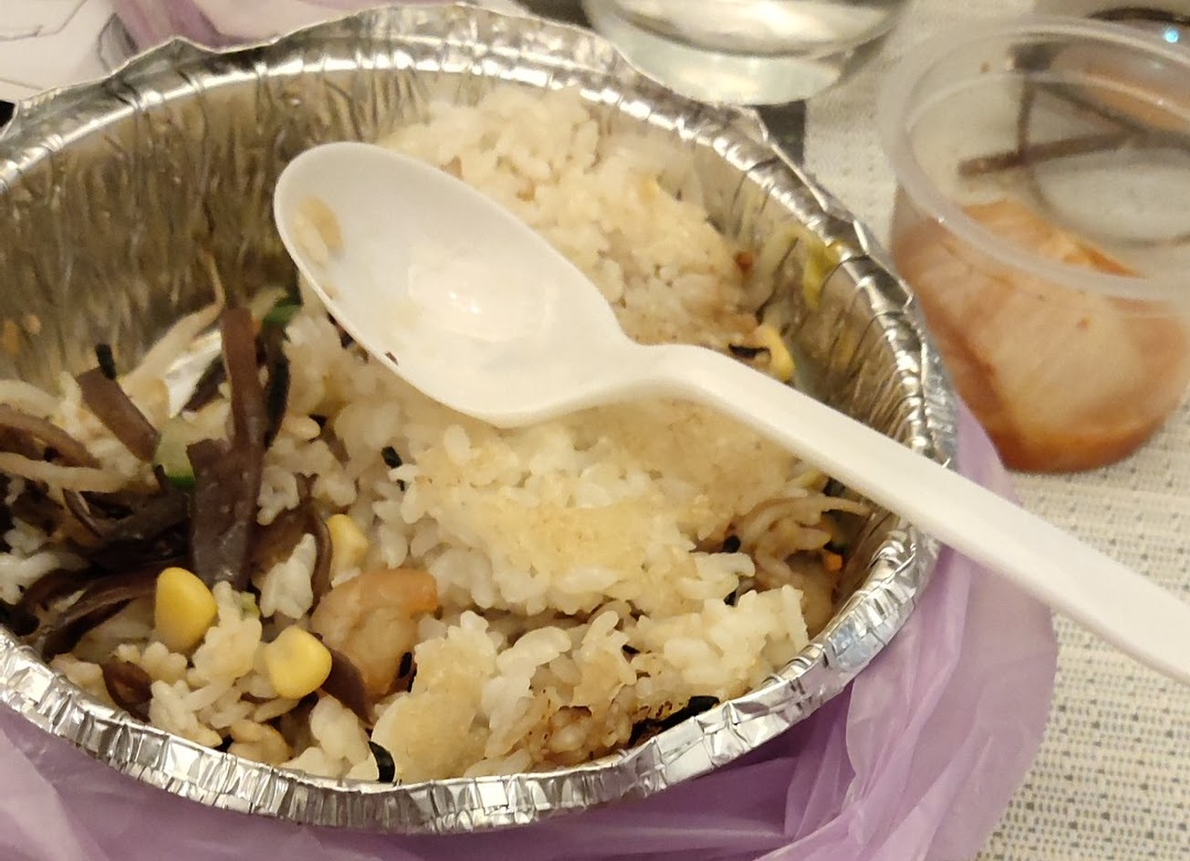 點了一個蝦仁拌飯,結果送來微波食品,快速加熱那種,還要賣$170,蝦子超少又小隻,然後最上面用一顆蛋蓋住下面的飯,即使有給泡菜,我還是覺得很不爽,不如吃便利商店