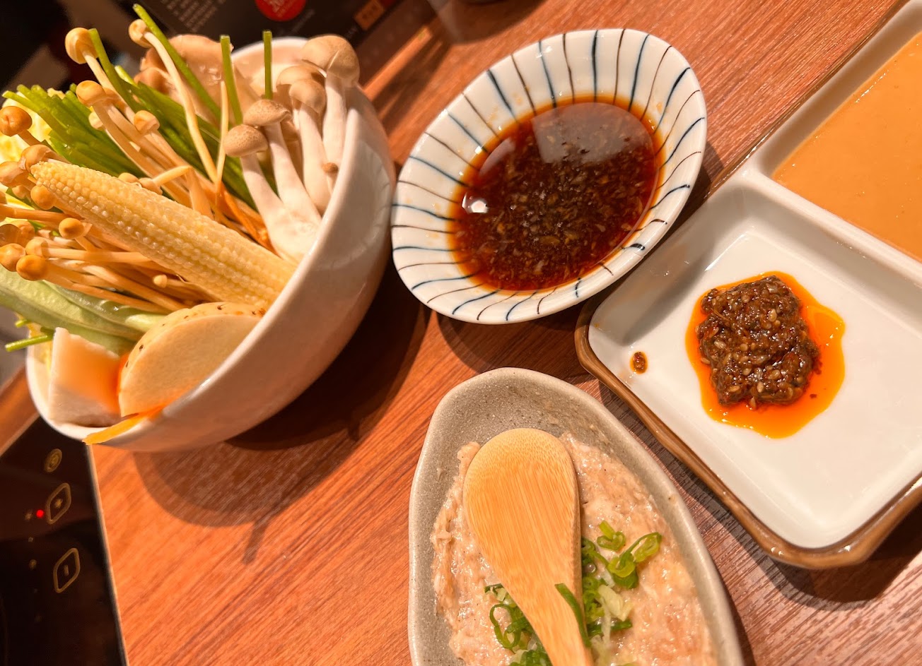 真的是非常驚艷的個人鍋物,最推薦摩滋鍋跟水炊鍋,是一般火鍋店很難有機會吃到的美味,牛腸脆Q的口感讓人難忘,雞肉水炊鍋的湯濃郁鮮甜,比很多雞白湯拉麵店的湯底都好喝,副餐選拉麵店員會幫你煮,真的一餐兩種不同享受,菜盤也是好吃沒有廉價火鍋料,都是很有日本特色,感覺要去特殊超市才買得到的火鍋料還有新鮮蔬菜,沾醬也很特別,大大推薦🥰