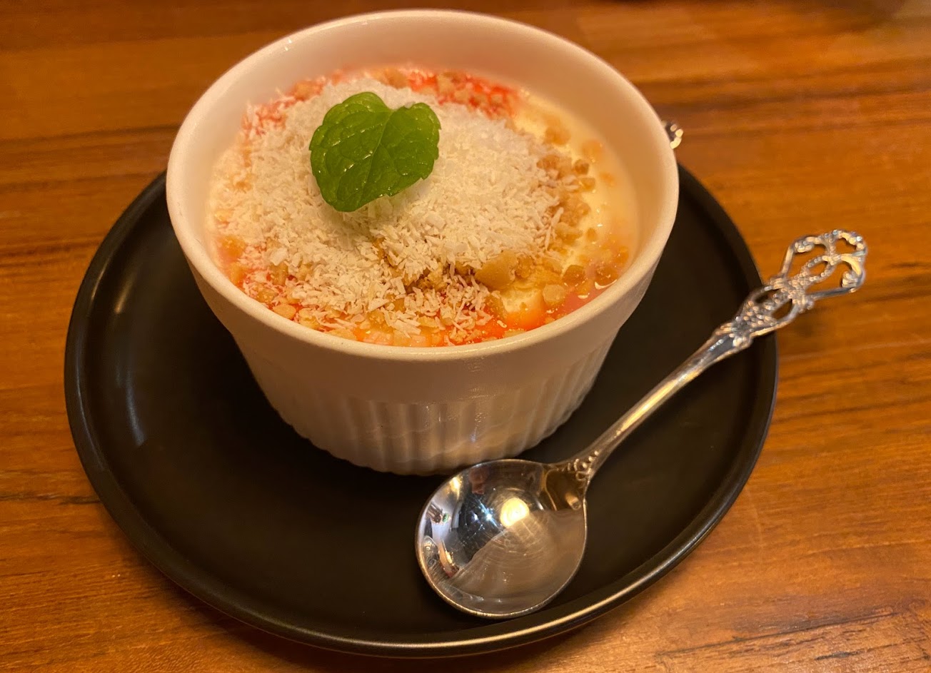 瑪拉貝,牛奶奶酪加上花生粒和草莓醬及椰子粉,不會太甜,奶酪本身奶味重,中和了草莓醬帶來的甜度