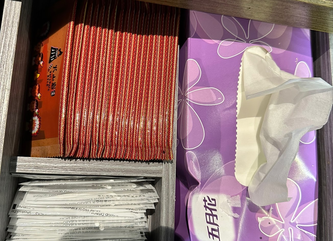 廁所乾淨、還有漱口用品、以及貼心提供女性生理用品