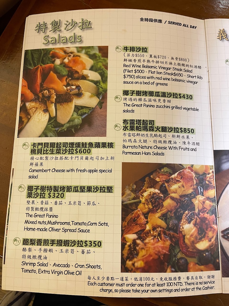 以前非常常來光顧,也常常帶家人來很多次。一年多沒去了、昨天一個人去用餐發現菜單改了 價錢也提高不少。 只點了沙拉跟果汁,今天拉到脫水⋯ 希望能注意一下品質。給三顆星是因為從前是五顆星的愛店