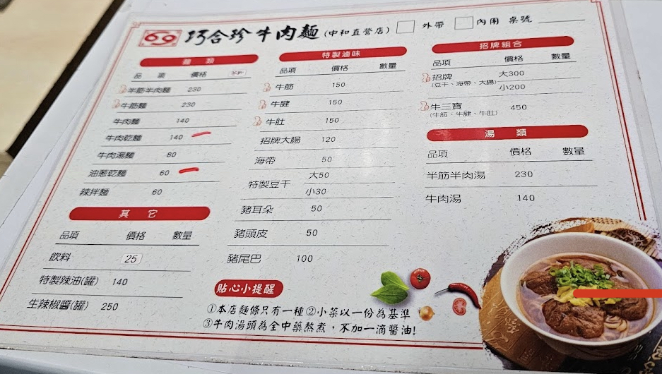2024最新在地推薦餐廳的菜單_巧合珍牛肉麵(中和店)的菜單、圖片
