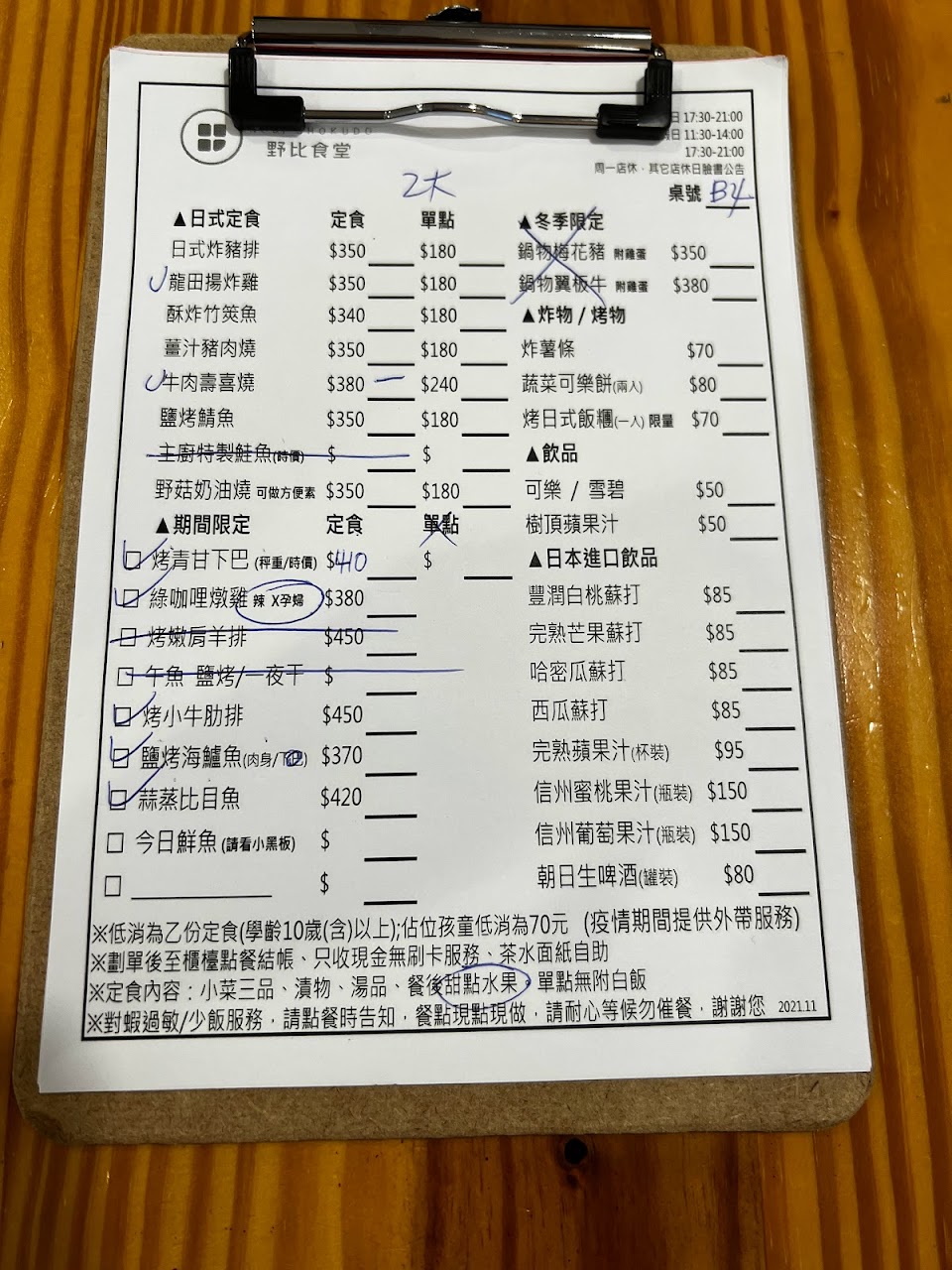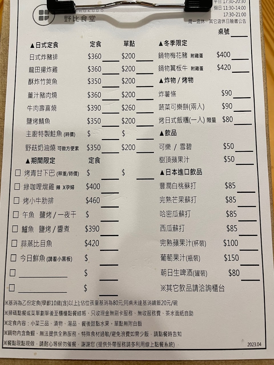 2024最新在地推薦餐廳的菜單_野比食堂的菜單、圖片
