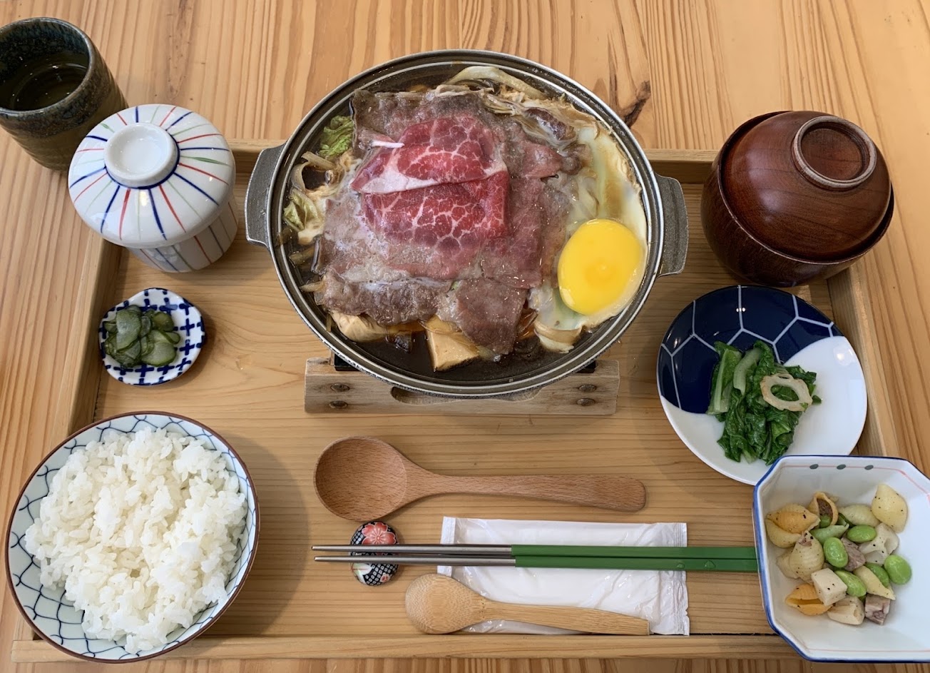 翻桌率很快 外場服務生很親切服務很好 但太晚來餐點會賣完 建議提前訂位 白飯可以續 牛肉壽喜燒味道偏鹹 個人蠻喜歡的