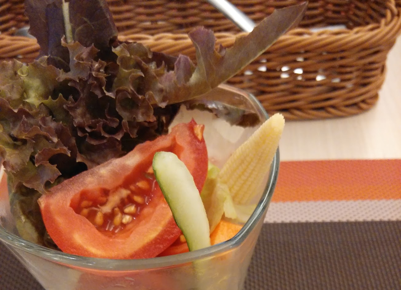 煙燻鮭魚麵很鹹,裝沙拉的器皿嚴重破損,不衛生