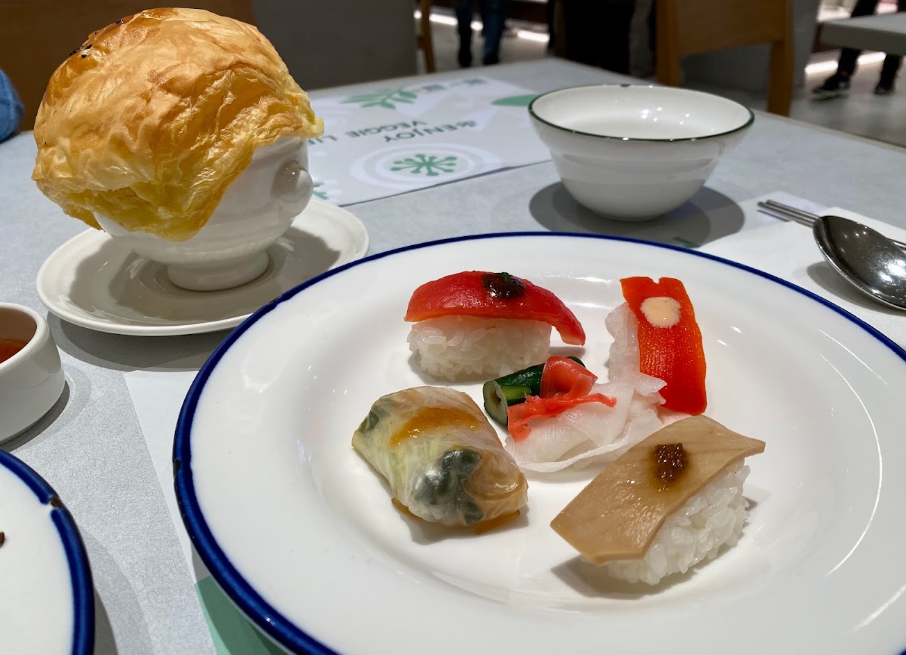 第一次體驗素食吃到飽餐廳,種類不少,有些還做成握壽司的樣子,相當有趣,喜歡吃素食的朋友,應該會喜歡這裡。