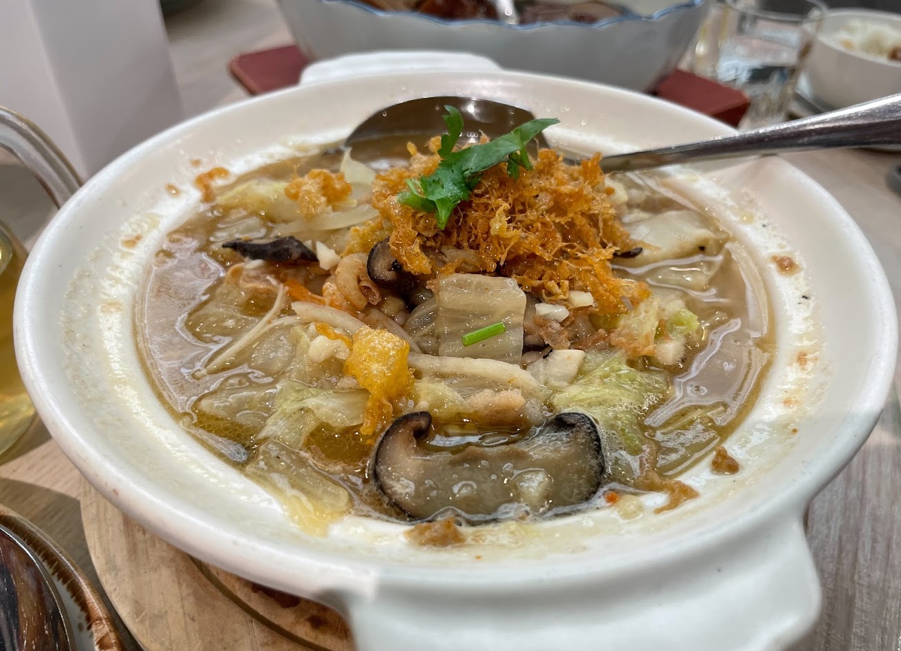 十人套餐$6000,菜色豐富,多到眼花撩亂,每道菜都非常美味可口,色香味俱全,無論是大人小孩都愛吃。用餐環境舒適,在一個小包廂裡,用窗簾隔開,服務態度很好,是多人聚餐的最佳選擇,優質店家,值得再訪!