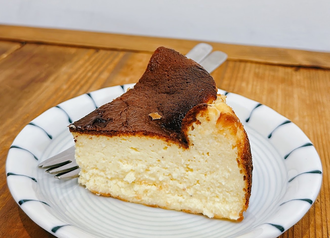 半熟巧克力巴斯克:巧克力堅果巴斯克,切下後中間會流心,巧克力苦甜,堅果增添了口感,乳酪體濃醇。