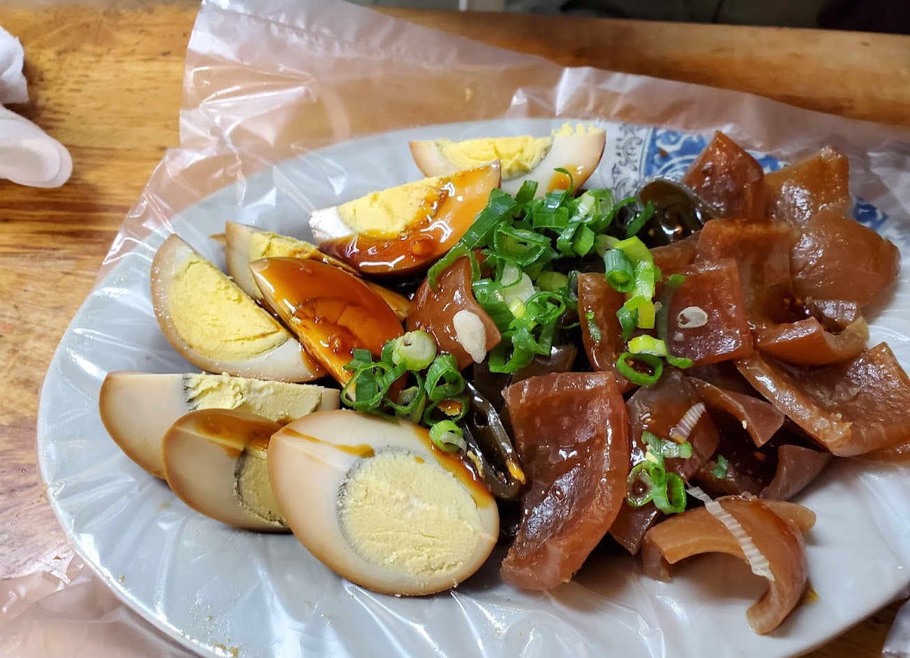 這裡的冷滷味,都是爽口而不過重的滷法,雖仍稍稍偏鹹,但是如豆皮一類,咀嚼其中,滷味的香氣會越嚼越香,再淋上一點甜甜的醬油膏,即是氣味十足的傳統滷菜,難怪桌桌人手一盤。