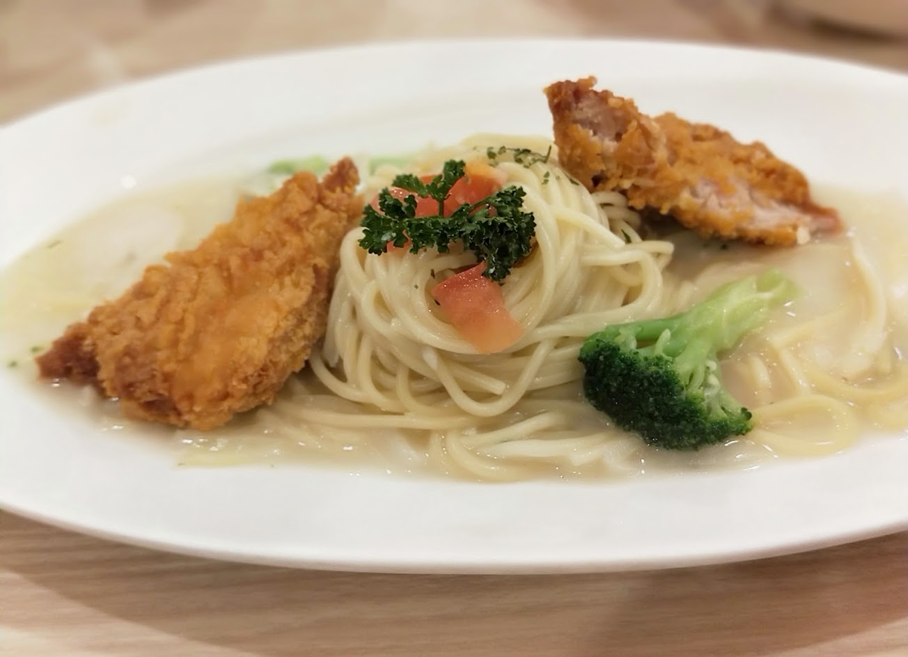 環境乾淨。服務人員相當到位 上菜速度也是相當快,濃湯跟飲料幾乎就是馬上來,義大利麵也不會等很久 披薩原先以為會等比較久,結果跟義大利麵只差了不到5分鐘,上來的時候,脆薯都是現炸的,很燙很脆 價位還算合理,是能吃飽的份量