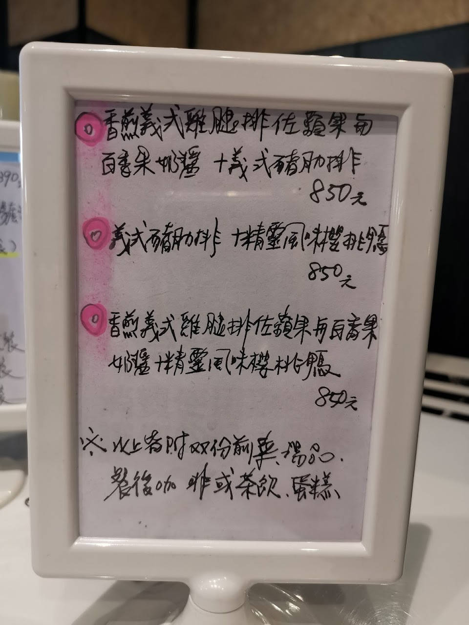 用餐環境很棒,老闆娘也很親切,大力推薦義式豬肋排,真的超級好吃,其他餐點也不錯,份量十足,吃不完都打包^^
