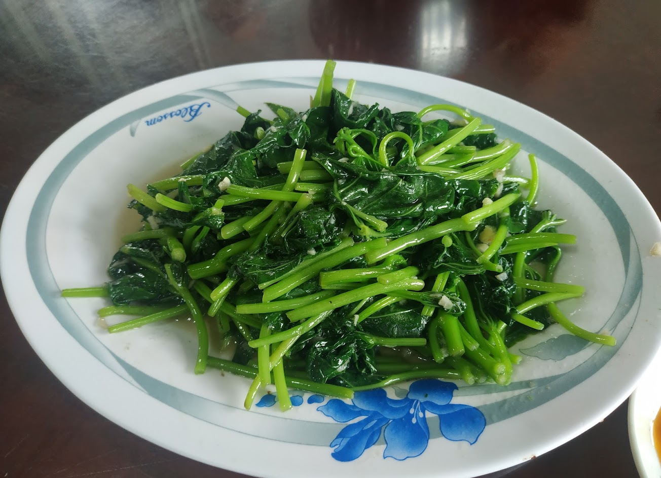 客家鹹湯圓, 鮮炒地瓜葉