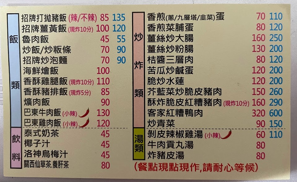 先說結論:經濟實惠而且美味可口的小吃店,一定會再來的店。今天點了肉絲炒板條(住在新竹30年,吃過最好吃的炒板條),巴東雞肉飯、炒高麗菜、貢丸湯。除了貢丸湯一般般(貢丸吃起來不像一般新竹貢丸,感覺不純是豬肉,有摻澱粉或魚漿,總之不是我認為的新竹貢丸,建議店家可以直接使用新竹知名貢丸品牌即可)。