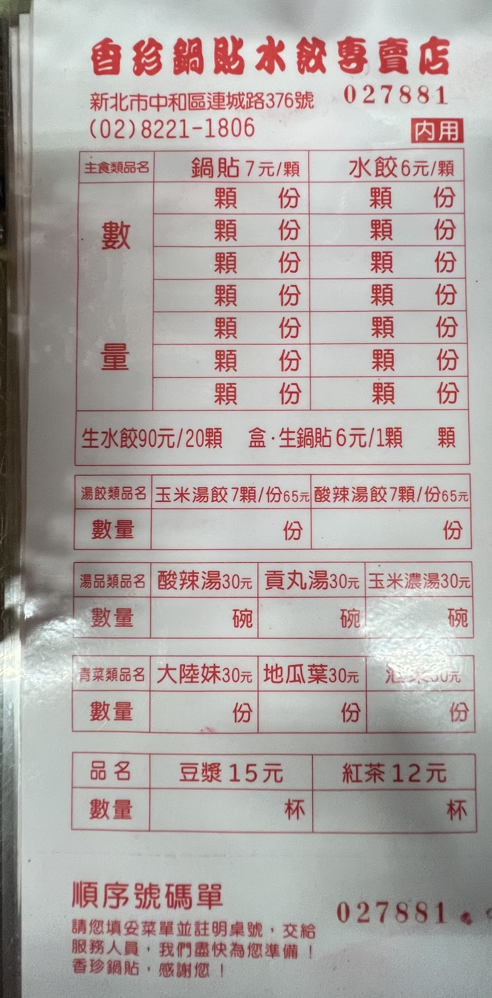 2024最新在地推薦餐廳的菜單_香珍鍋貼的菜單、圖片