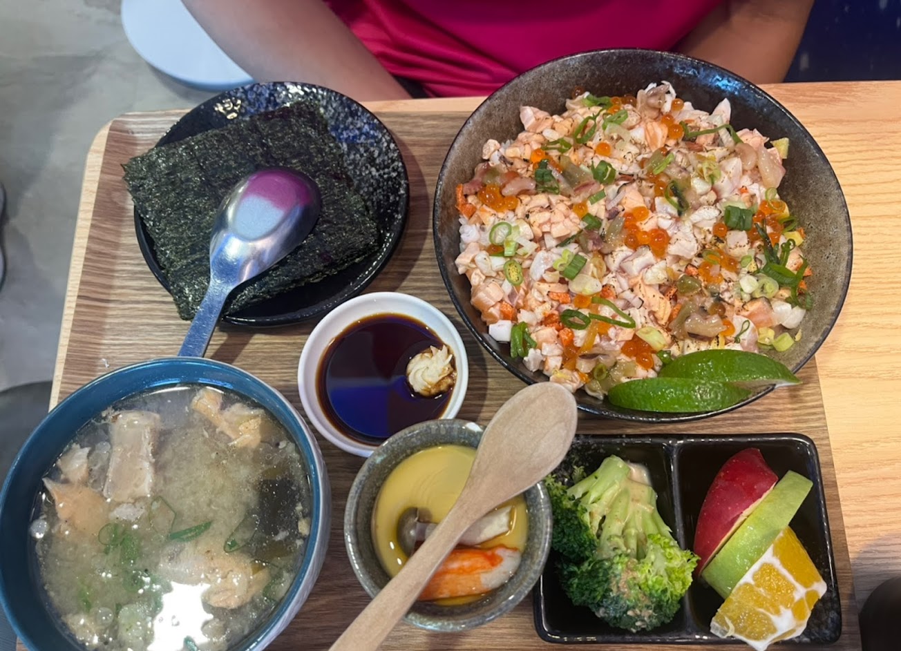 在這美食沙漠?️能有家好吃的日本料理真難得,店員們忙碌沒什麼笑容沒關係,東西好吃才是重點、裝潢乾淨、氣氛好,特別是綜合散壽司?,另外烤雞翅烤節瓜生魚片都好吃?