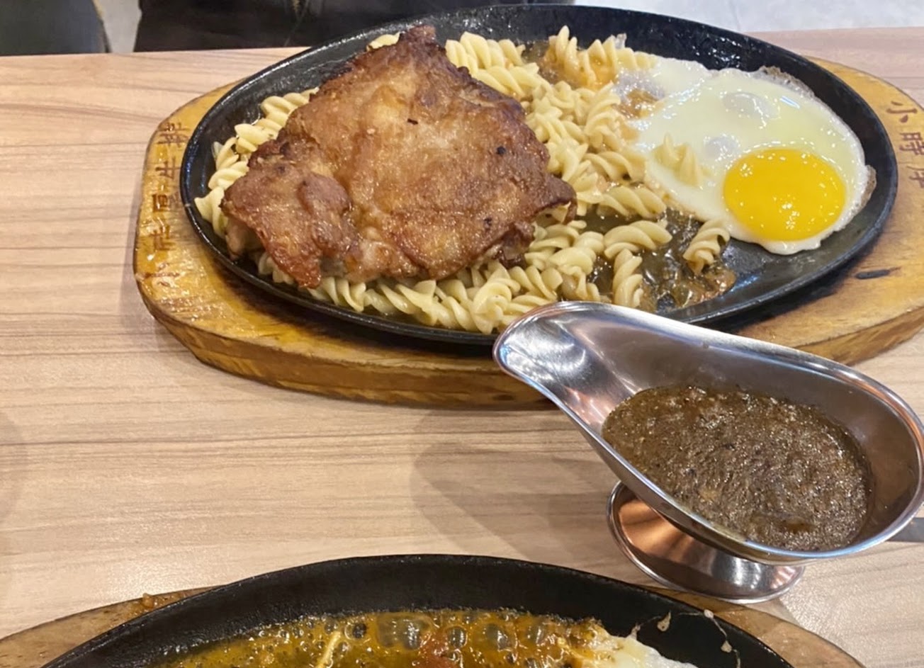 小時厚牛排, 雞排, 黑胡椒醬, 鐵板麵, 玉米濃湯