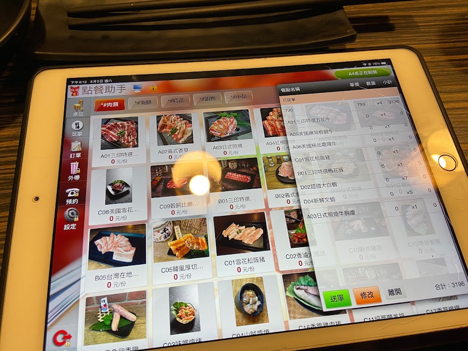 海鮮、肉品還不錯,但牛排烤完咬不太動(略帶血色、大概7分熟),泰國蝦1299吃到飽,點前兩輪約各15隻,第三輪剩3隻,店員說泰國蝦沒有了,嗯…我們是開門第一批11:00吃的,中午12:40左右就沒有了,還是主打吃到飽的品項泰國蝦,或許補貨來不及,但如果補貨問題導致存量不足,事先告知客人不要選這項目是否觀感上會好許多