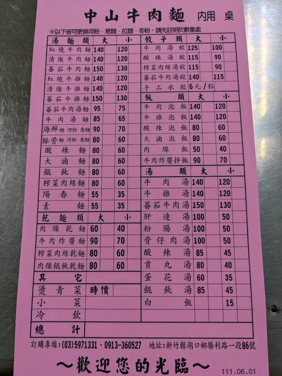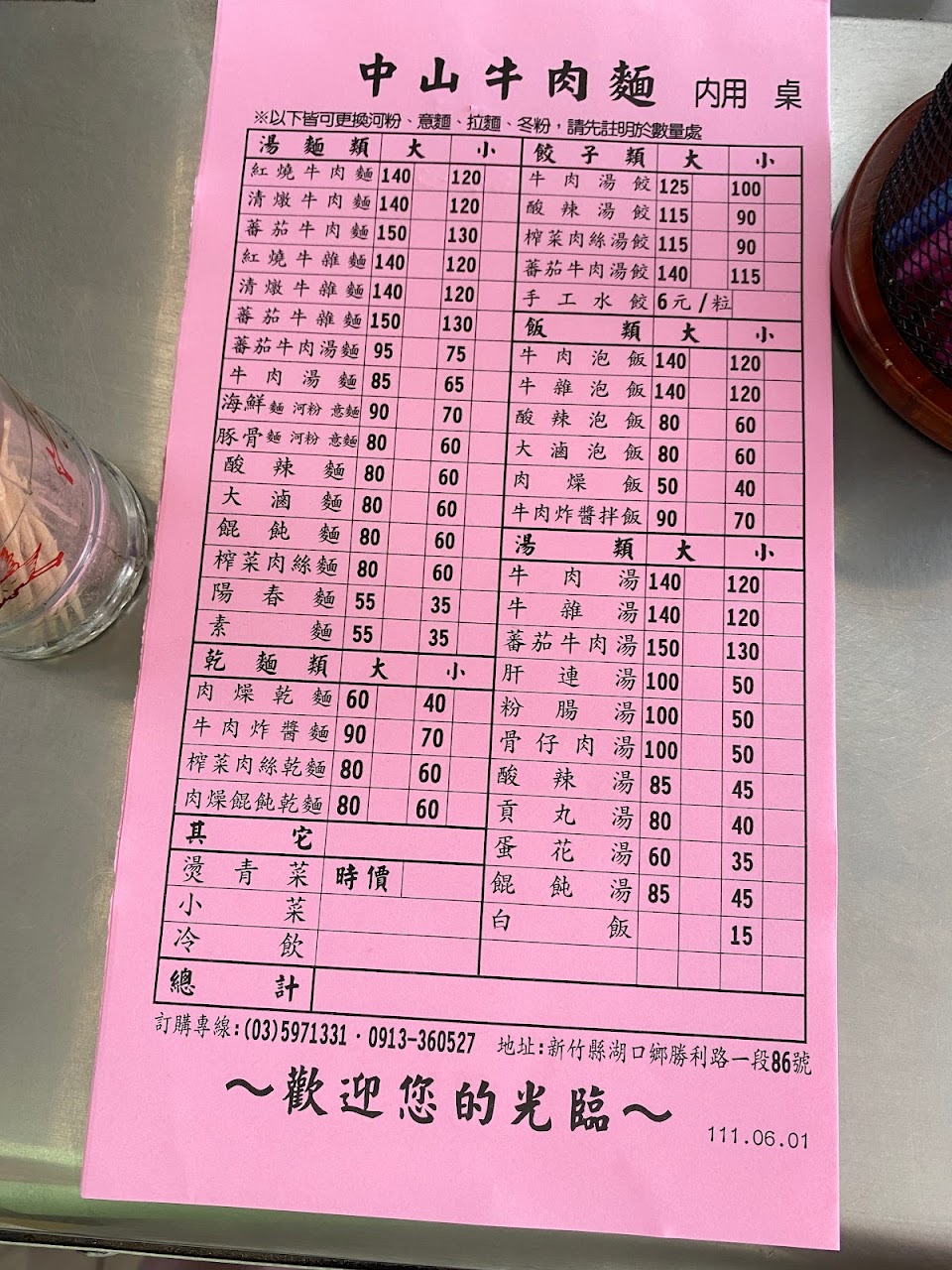 2024最新在地推薦餐廳的菜單_中山牛肉麵的菜單、圖片