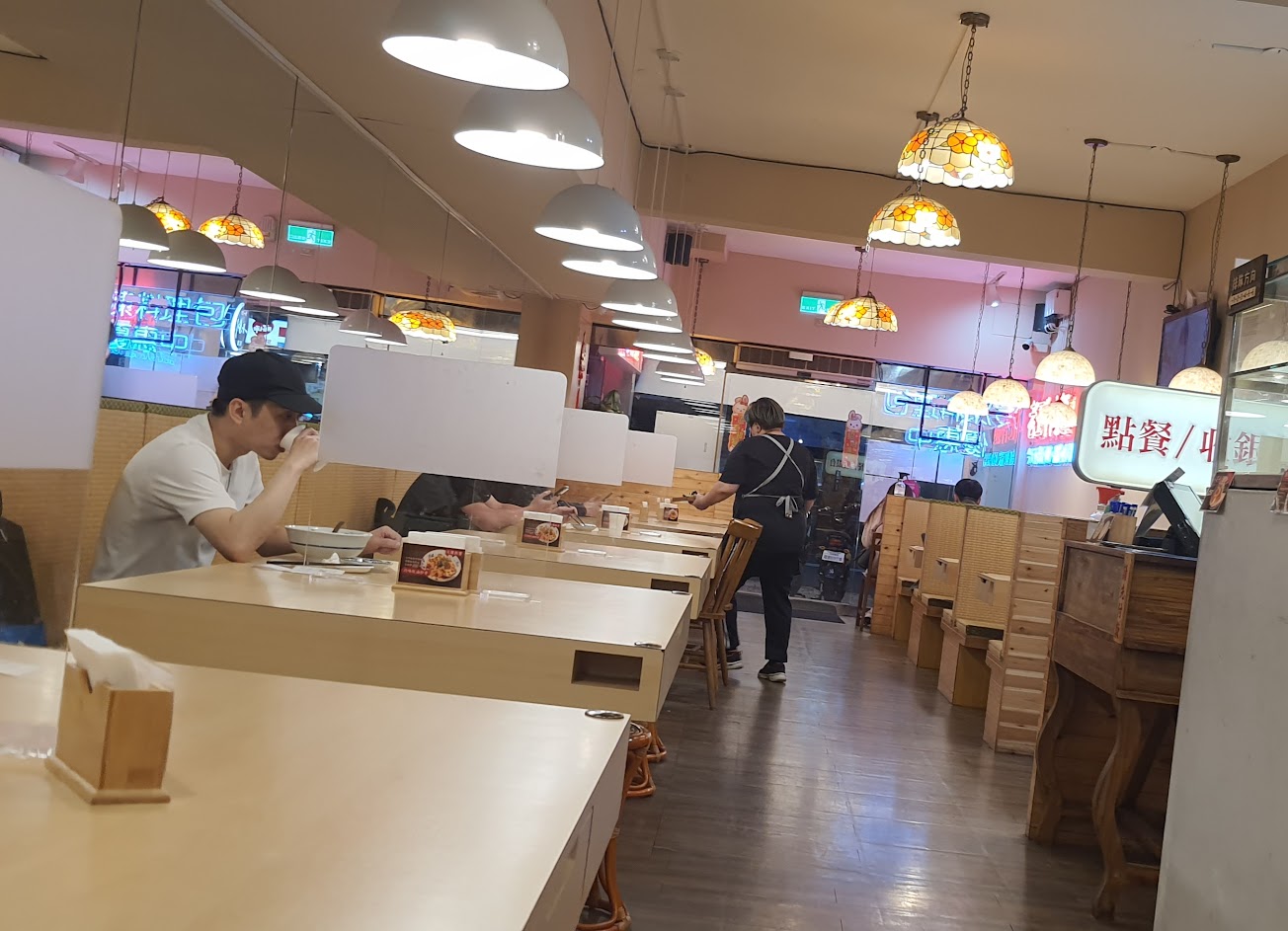 生意很好,所以座位安排很糟,會併桌,導致中間的隔板形同虛設