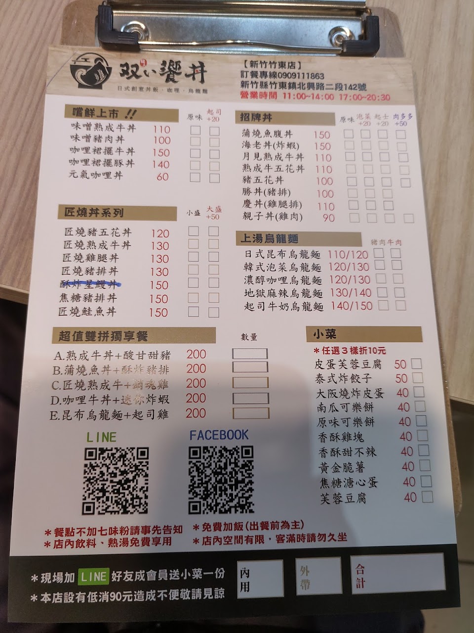 2024最新在地推薦餐廳的菜單_雙饗丼-新竹竹東店的菜單、圖片