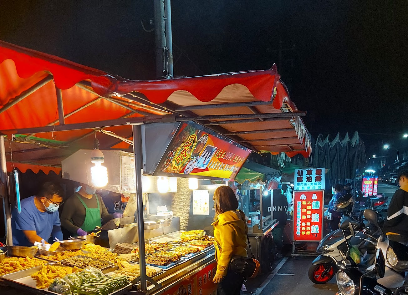 小小的小夜市,主食類的小吃居多,但車子多、路小,過馬路要小心車子⋯