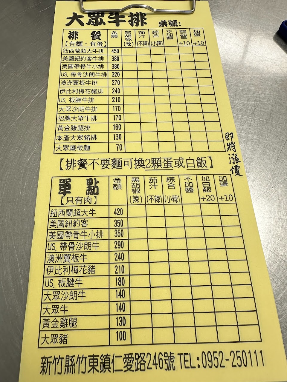 2024最新在地推薦餐廳的菜單_竹東夜市大眾牛排的菜單、圖片