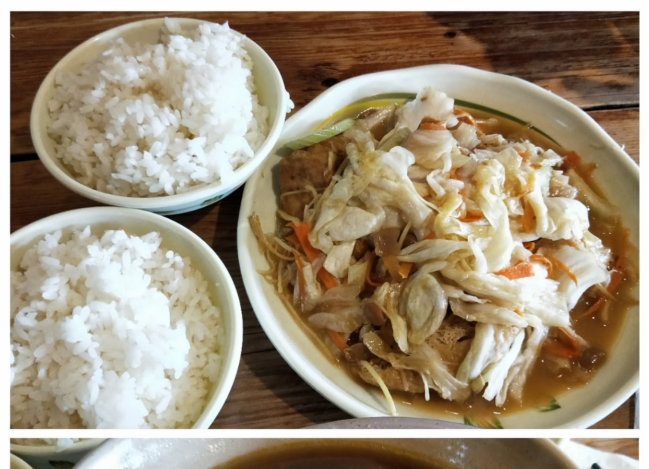 滿特別的店。白飯餅乾吃到飽,那天點了茄子水蓮臭豆腐三杯豆腐,沒有到特別好吃,但都還不錯,只是一開始不知道白飯可以吃到飽,所以多點了兩盤炒飯,炒飯普通。五行湯麵度湯滿好喝的。